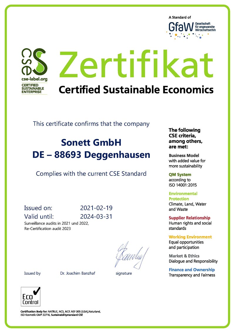 NCS (Nature Care Product) ve CSE Ekolojik Sertifikalı